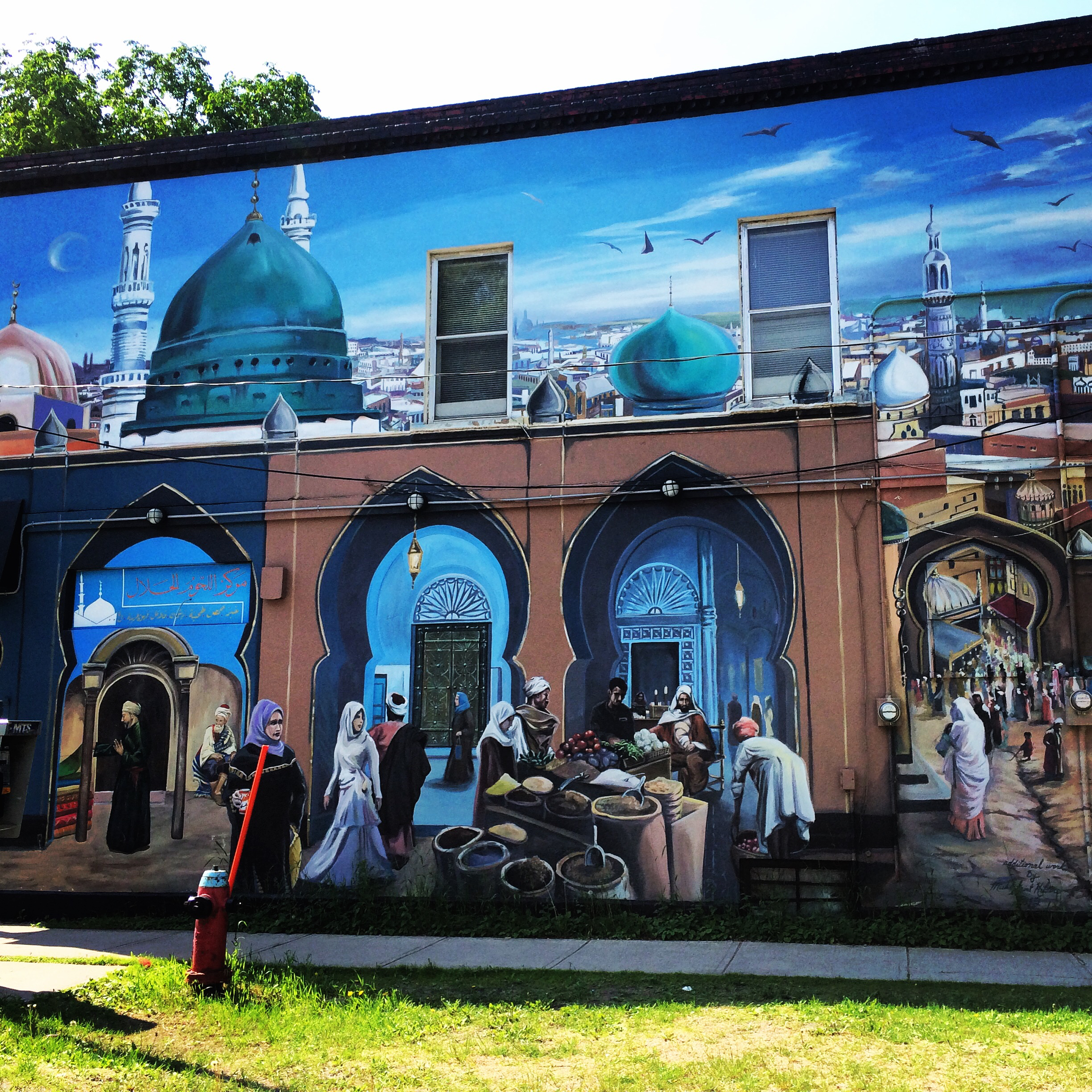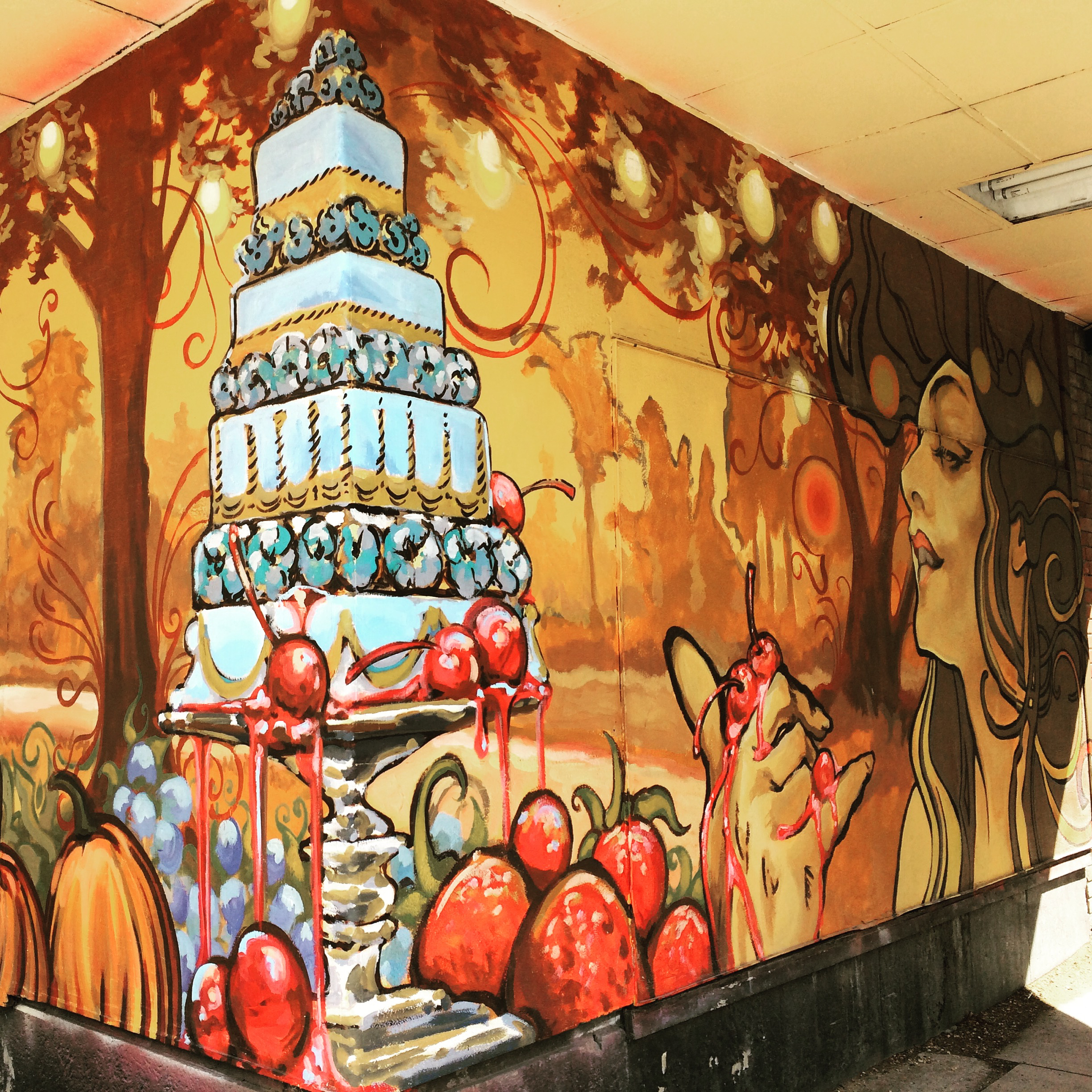 Beyond the multitude and scale of these paintings, one of the things I found interesting was what I heard as a foundation for their existence. According to a local resident, many of these artscapes are commissioned works to help avoid graffiti. By covering the walls in art, taggers respect the work of other artists and therefore won’t disrupt it like they would a plain wall. At the base of a number of the works, dedications are noted; some in memoriam, others a reflection through a quote or other artistic expression.