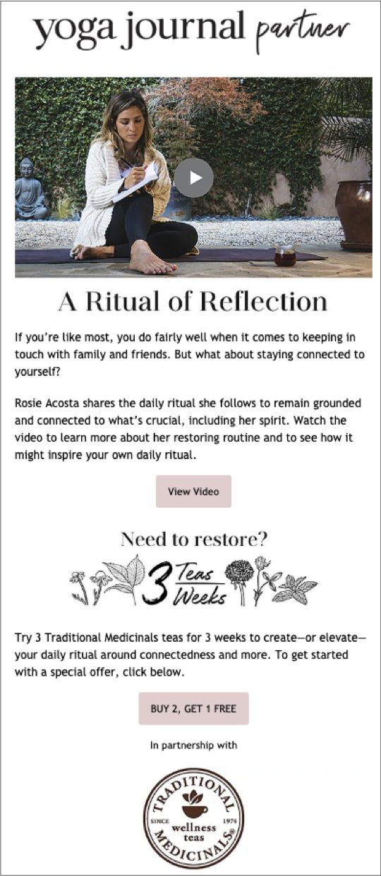 Traditional Medicinals faced competition with a variety of popular tea brands. The medicinal grade quality represented a core differentiator which provided a storytelling opportunity. The goal of the campaign was to drive awareness and create purchase intent.